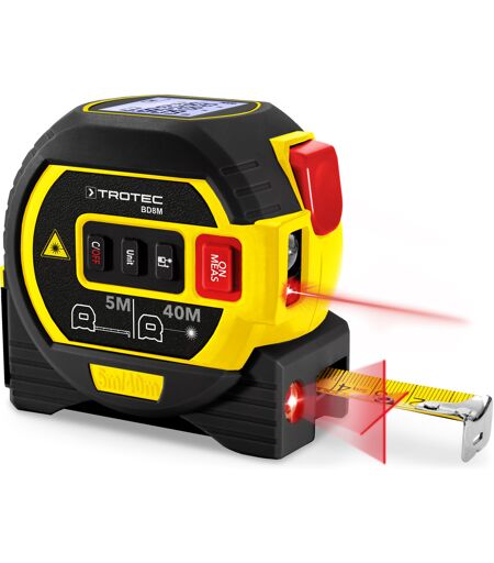 Laserafstandsmåler BD8M3-i-1 multifunktionsmåleapparat med integreret afstandslaser, krydslinjelaser og forlænges målebånd ...