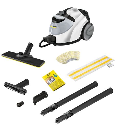 Kärcher SC 5 EasyFix jernpropdamprenseren er en rigtig allrounder. Med en dampeffekt på 4,2 bar og en varmekapacitet på 2.250 watt er den ikke kun enormt kraftfuld, men har også en tilslutningsmulighed for et damptrykstrygejern. Derudover renser enheden helt kemikaliefrit, og VapoHydro-funktionen fjerner genstridigt snavs endnu lettere ved at tænde for varmt vand. Takket være den fleksible samling giver EasyFix gulvmundstykket maksimal ergonomi og knirkende rene resultater takket være lamelteknologien. Yderligere dyser gør det muligt at rengøre en lang række overflader efter behov, og med 4-trins dampregulering på enheden kan dampintensiteten justeres til overfladen og graden af tilsmudsning. 1,5 liters tanken kan genopfyldes når som helst uden problemer og uden afbrydelse, og det integrerede kabelrum, opbevaringsrummet til tilbehør og gulvdysens parkeringsposition er nyttige detaljer til endnu mere bekvem damprensning. Med hensyn til sikkerhed imponerer SC 5 EasyFix Iron med en børnesikring og en sikkerhedsventil. ...