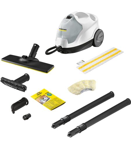 Kärcher SC 4 EasyFix 1.512-630.0 damprenser er en rigtig allrounder. Den er meget kraftfuld med en dampeffekt på 3,5 bar og en varmekapacitet på 2.000 watt, den renser også helt kemikaliefri og eliminerer op til 99,999 % af vira og 99,99 % af bakterier. Takket være det fleksible led muliggør EasyFix-gulvmundstykket maksimal ergonomi og takket være lamelteknologi skinnende rene resultater på en lang række hårde gulve i husholdningen. Med det praktiske velcrosystem kan gulvkluden nemt og hurtigt fastgøres til gulvmundstykket og fjernes igen uden kontakt med snavs. Ekstra dyser gør det muligt at rengøre en lang række overflader efter behov, og med 2-trins dampregulering på håndtaget kan dampintensiteten tilpasses overfladen og tilsmudsningsgraden. Tanken på 0,8 liter kan fyldes når som helst uden problemer og uden afbrydelser, og det integrerede kabelrum, tilbehørsopbevaringsrummet og parkeringspositionen til gulvmundstykket er nyttige detaljer til endnu mere komfortabel damprensning. På sikkerhedsområdet imponerer SC 4 EasyFix Iron med en børnesikring og en sikkerhedsventil. ...