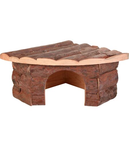Gnaver-legehuset er et optimalt gemmested, hvor din lille skat kan føle sig tryg og sikker. Gnavere har en medfødt flugttrang, og et hus er derfor et ”must” i ethvert gnaverburs grundudstyr. Dette hjørnehus kan placeres i ethvert bur eller løbegård pga. sin praktiske og pladssparende form. Udover at dit kæledyr kan trække sig tilbage i huset og få en lur, kan det også ligge på taget og holde øje med alt. Dyret kan endvidere bide og gnave i træet. Hjørne-legehuset i overblik: Samlet mål: L 32 x B 21/21 x H 13 cm Indgang, mål: L 9 x B 7 cm Samlet mål: L 42 x B 30/30 x H 15 cm Indgang, mål: L 10 x B 10 cm Det flade tag kan bruges som liggeflade Af naturtræ OBS: Check regelmæssigt produktet for skader og skift huset ud, hvis det er defekt eller har betydelige gnavemærker, da dit dyr ellers risikerer at komme til skade. Hvis du vil opstille huset permanent udendørs, bør du beskytte det mod regn med dertil egnet, ugiftig træbeskyttelse. ...