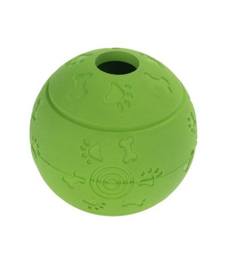 Boomer SnackBall hundelegetøj er lavet af sikker og meget slidstærk gummi. Fyld Boomer SnackBall med godbidder. Din hund skal forsøge at få fat i godbidderne ved at rulle bolden hen over gulvet. Den specielle snack-labyrint sørger for, at godbidderne bliver doseret i afmålte mængder. Ideel til træning og uddannelse af din hund. Masserer og plejer mund og tænder under legen. Et skønt aktivitetslegetøj til din hund; med lækker vanilje aroma. Bemærk: Selve farven er ikke valgfri. Snackball fås rød, blå eller gul. Godbidderne følger ikke med i leveringen. Vi anbefaler følgende, passende snacks: Elsket af både store og små: Chewies små Tyggeben (semi-moist) Kornfri. Perfekt belønning til ernæringssensible hunde: Caniland soft hestebidder, kornfri Eksempel: Bemærk: Som ved ethvert andet produkt skal du holde opsyn med dit kæledyr, når det leger med legetøjet. Tjek venligst produktet regelmæssigt for skader og udskift legetøjet, hvis det er beskadiget, eller hvis dele er blevet væk. Ellers kan dit kæledyr risikere at komme til skade. ...