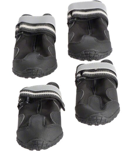 Hundeskoene Sports Protection Boots er specialudviklet til hunde. Beskyttelsessko til hunde reducerer risikoen for infektion efter poteskader og understøtter helingsprocessen, fordi sårene er beskyttet mod urenheder. Hundeskoene er ikke kun praktiske om vinteren, men også til lange vandreture på veje med sten eller tjære. Skoen forener komfort med funktionalitet. Hundeskoens udvendige materiale er af blødt, smidigt polyester, som garanterer komfort og at huden kan ånde. Stykker af kunstlæder giver skoene et sporty look og holder poterne tørre. TPR-sålerne ("Thermoplastic Rubber") er forsynet med en skridsikker profil og giver derfor din hund stabilitet på glatte og stenede jordtyper. Samtidig beskytter sålerne de følsomme poter mod påvirkninger fra kulde, varme, grus og salt på vejene. To velcrolukninger sørger for, at skoene sidder optimalt på alle hunderacer. Reflekterende snipper giver større sikkerhed på spadsereture i skumringen eller i mørket. De vandafvisende beskyttelsessko til hunde rengøres nemt med en fugtig klud. Hundesko S P Boots i et overblik: Farve: sort Materiale: 100 % polyester Skridsikre TPR (Thermoplastic Rubber) underside Elastisk top Optimal bærekomfort Dobbeltradet velcrobånd Blød fleece-foring Reflekterende snipper Lader huden ånde Vandafvisende Kan vaskes i hånden ved 30°C Henvisning: Husk at imprægnere hundeskoene før de bruges første gang og efter hver vask. Brug venligst henvisningerne efter størrelsestabellen til at bestemme den rigtige skostørrelse: Størrelse Skobredde Skoens samlede længde Skoens indstignings-omfang Skohøjde (potehøjde) Profilsål L x B Velcrobånd bredde XS (2) 5 cm 11 cm op til 13,5 cm 3 cm 6 x 5 cm 1,4 cm S (3) 5,3 cm 11 cm op til 15,5 cm 3,5 cm 6 x 5,3 cm 1,4 cm M (4) 5,8 cm 12 cm op til 16 cm 3,5 cm 6,3 x 5,8 cm 1,4 cm L (5) 6,5 cm 12 cm op til 16,5 cm 3,8 cm 7 x 6,5 cm 1,4 cm XL (6) 7 cm 14 cm op til 19,5 cm 4 cm 7 x 7 cm 2 cm XXL (7) 8 cm 14,8 cm op til 21,5 cm 4,5 cm 8,5 x 8 cm 2 cm Henvisning til at bestemme den rigtige skostørrelse: Mål potens bredde under belastning på det bredeste sted med et målebånd. Hvis resultatet ligger mellem to størrelser, skal du vælge den største sko. Mål også potens omfang, for at sikre en korrekt indstigning i skoen. Mål derefter den samlede længde på den udvalgte sko fra potens begyndelse. På dette sted måler du nu potens omfang ved indstigningen. Hvis omfanget af indstigningen er for stor, kan den nemt gøres mindre ved hjælp af velcrobåndene. Vær opmærksom på: Præget på skosålen finder du nummer 2 - 7. Ddette nummer viser skoenes størrelse, f.eks er nr. 7 = str. xxl. ...