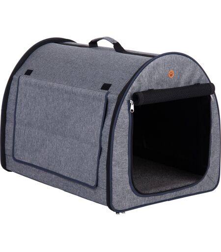 Dette transportable hundehus kan anvendes til flere formål: Som soveplads til den firbenede på rejsen eller ganske enkelt som en transporthule til hjemmet, hvor din hund eller kat kan trække sig tilbage i fred og ro. De plastbeklædte metalbøjler gør hundehuset ekstra stabil. Det består af 100% polyester og er nemt at have med at gøre. Huset klappes hurtigt sammen og transporteres let i den medfølgende taske. Nemmere bliver det ikke!Vær venligst opmærksom på: huset er ikke egnet til at løfte hunden eller katten i. Det kan altså ikke bruges som transportboks, men som en tilbagetrækningsmulighed for hunden derhjemme, på rejsen eller under udstillinger. Det transportable hus giver din hund eller kat den perfekte oase til at sove og slappe af - om det er på campingpladsen, på rejser eller derhjemme. Den robuste polyester-konstruktion er forstærket med metalstivere, som giver stabilitet og fleksibilitet på samme tid og kan nemt og pladsbesparende gemmes væk.Ligesom mennesker har hunde og katte også brug for at kunne trække sig tilbage, især under anstrengende rejser, ferier eller på overfyldte campingpladser. Et hvilested er vigtigt, så dyret ikke bliver stresset for meget. Det sammenklappelige Easy Go-hus er det perfekte valg, når det kommer til at give din firbenede ven et artsrigtigt tilbagetog. Det er mindre end en klassisk transportkasse og kan opstilles overalt og nemt monteres. Den fleksible hytte er lavet af slidstærk polyester, som er særligt nemt at rengøre og også egnet til udendørs brug. For en god luftcirkulation sørger lufthuller foran og siderne. På forsiden er der en netdør, som let kan åbnes og lukkes ved hjælp af lynlås.Easy Go foldbar hus er fleksibel, nem at bære med et bærehåndtag på toppen og kan stuves væk i de mindste rum, f.eks. i den matchende nylonpose, der er inkluderet i leveringen. På grund af sin alsidighed og sidst men ikke mindst dets fashionable design i tiltalende varme farver er transporthytten en attraktiv del af ethvert hundeudstyr.Transportabelt hus Easy Go i overblik:Komfortabelt indendørs hundehus - ideelt sted til rejser og hjemmeLavet af slidstærk polyesterFleksibel og bærbar (med bærehåndtag)Nem at håndtereDejligt varmt, medfølgende underlag i fleeceMetalstivere giver stabilitetLille taske til godbidder og legetøjDe indbyggede net sørger for optimal luftcirkulationDør med lynlås nem at åbne og lukkeKan foldes sammenMed passende bæretaskeFarve: gråMateriale: 100% polyesterGitter: metalUdluftning: net på forsiden og højre og venstre sideForskellige størrelserStørrelsestabelStørrelseYdre målB x D x HIndre mål B x D x HVægtf.eks. tilS41 x 48 x 41 cm40 x 44 x 40 cm1,4 kgChihuahua, YorkshireM49 x 65 x 50 cm49 x 63 x 49 cm2,0 kgPekingeser, Mops, Bichon FriséL57 x 77 x 63 cm57 x 75 x 62 cm2,75 kgHusky, Samojede, Golden Retriever ...