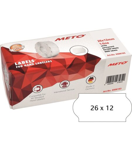 Meto Pristiketter Perm. 26x12 Mm Hvid 6 Rl.