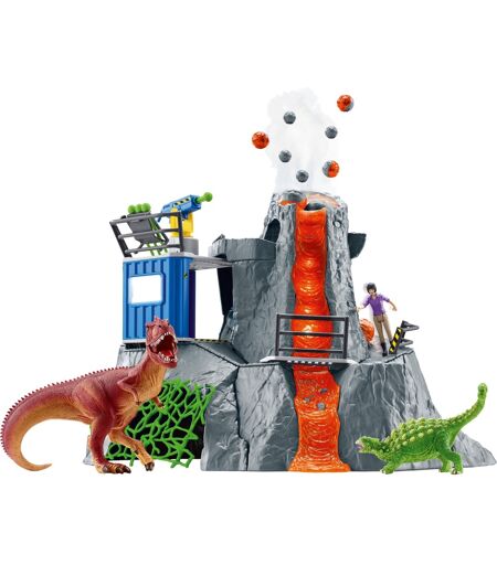 Forsker Yuki fra Schleich® Dinosaurs store vulkanekspedition samler alt om dinosaurer i sin forskningscontainer. Pludselig hører hun en høj rumlen, hele bjerget vibrerer og røg stiger op! Hun reagerer hurtigt og hopper ind i sin flugtrutsjebane, som fører hende til en hemmelig hule under vulkanen. Lige i tide, fordi vulkanen bryder ud! Gennem udbrudsfunktionen kan sten katapulteres ud af vulkankrateret. Derudover vibrerer vulkanen og røg stiger. LED-lysfunktionen, som er integreret både i lavastrømmen og i nogle sten, sikrer en spændende legeatmosfære! Yderligere spilhandling skabes af forhindringsbanen på bagsiden af vulkanen. Højdepunktet på den store vulkanekspedition er de to dinosaurer, som indgår i eksklusivt specialmaleri i legesættet. Der kræves yderligere 3 AA-batterier. Disse er ikke inkluderet i sættet. ...