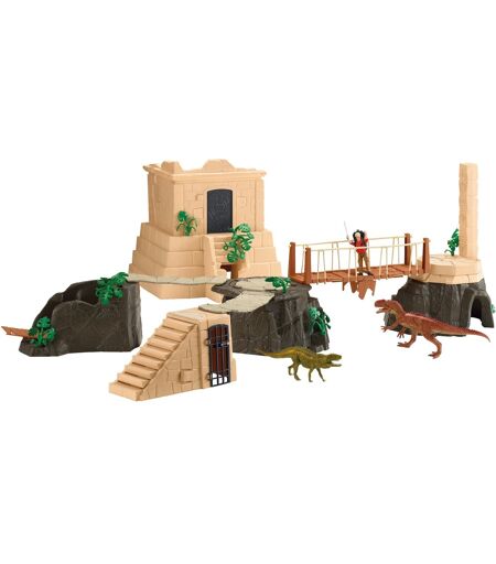 Træd ind i en verden fuld af spændende jungleeventyr med Dino Temple Conquest Mega Set fra Dinosaurs-serien af Schleich! De modige Colby-brødre, anført af den dristige Flynn, snubler over den ultimative skattejæger-spænding i Amazonas krat. Men rigdommene i det mystiske tempel er godt beskyttet - af en frygtindgydende Monolophosaurus og en glubsk Postosuchus, der forfølger hvert skridt. Dette detaljerede legesæt tager børn med ind i en verden af farlige forhindringer og vanskelige gåder. Selve templet er et byggesæt af muligheder, der kan omdannes til nye, spændende scenarier med få trin. Uanset om Flynn overlever den vakkelvorne hængebro eller bliver overrasket over den forræderiske trappe - hvert element øger spændingen! Men den smarte kombination af kontakter, der er i stand til at dreje væggen, og hemmeligheden bag de skjulte nøgledele lover frelse - hvis bare han kan undslippe gitterfælden. ...