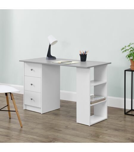 [en.casa]® Skrivebord Lemberg - 120x49x72cm - melaminbelagt spånplade - med skuffer og hylder - hvid/lysegrå