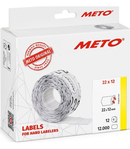 Meto Prisetiketter Perm. 22x12 Mm Hvid 12 Rl
