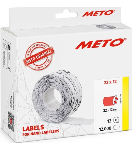 Meto Pristiketter Perm. 22x12 Mm Rød 12 Rl.