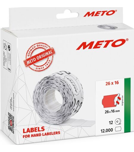 Meto Pristiketter Perm. 26x16 Mm Rød 12 Rl.