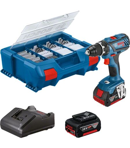 Den batteridrevne bore-/skruemaskine Bosch GSR 18V-28 Professional i robust design tilbyder høj kvalitet og holdbarhed takket være den robuste borepatron helt i metal. Dens kompakte design med kort hovedlængde gør den til den ideelle ledsager i trange arbejdsområder, og den integrerede LED-lampe oplyser også mørke pletter. Den elektroniske motorbeskyttelse (EMP) beskytter motoren mod overbelastning og sikrer en lang levetid. Derudover har GSR 18V-28 Professional en praktisk bælteclips, der gør det nemt at fastgøre den batteridrevne skruemaskine til bæltet eller stigen. 06019E610B-sættet indeholder et sortiment af bits og bor i 82 dele. ...