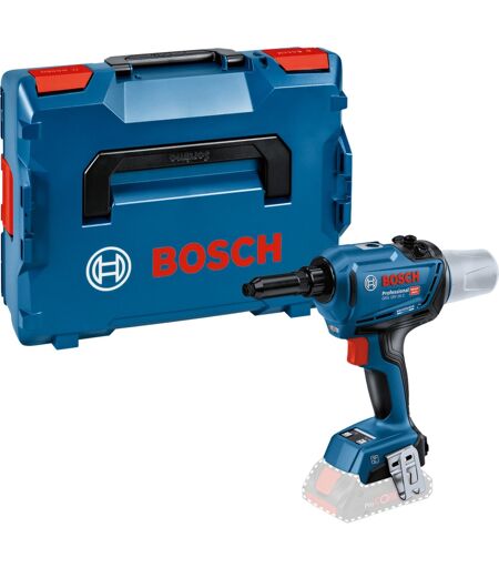 GRG 18V-16 C Professional trådløs nittepistol fra Bosch fastgør en lang række blinde nitter (3,0 til 6,4 mm diameter) med en konstant trækkraft på 16.000 N. Den er ideel til sammenføjning af forborede metalemner i klimaanlæg og elektriske installationer, metalkonstruktion, tag- og facademonteringsarbejde, bilreparationer og meget mere. GRG 18V-16 C Professional trådløs nittepistol tilbyder to driftstilstande: AUTO til automatisk nitning og MANUAL til individuel styring af arbejdsgangen. I mundstykkedepotet øverst på værktøjet fås mundstykker i tre forskellige størrelser, så mundstykkerne altid er ved hånden og hurtigt kan udskiftes. Den integrerede Bluetooth-forbindelse giver brugeren (når han bruger Bluetooth Low Energy Module GCY 42) mulighed for individuelt at definere og spore vedligeholdelsesplanen for sit værktøj via Bosch Toolbox-appen. Data og indstillinger for den trådløse nittepistol kan overføres mellem elværktøjet og smartphonen. GRG 18V-16 C Professional har også en foldbar hængende ring og en praktisk bælteclips til praktisk montering af nittepistolen på bæltet eller stigen. ...