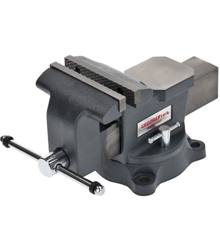 R93800150 parallel skruestik fra GEDORE red kan drejes over en drejeskive og muliggør absolut parallel fastspænding takket være dens centrerede vejledning. De 150 mm brede kæber tilbyder en maksimal klemdybde på 125 mm og en klemkraft på 25 KN, derudover er der en borepatron til rør med en diameter på 13,5 - 56 mm og en ambolt. Skruestikken, der er lavet af støbejern, er udstyret i foden med huller til fastgørelse til et arbejdsbord. ...