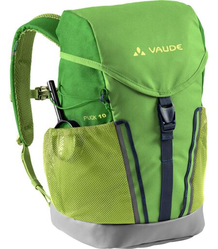 Puck 10 fra VAUDE er en funktionel rygsæk til eventyrlystne børn, hvor forstørrelsesglas og en let polstret siddeplads følger med og letter både udforskningen og pauserne langs vejen. Rygsækken har en vandtæt bund, så barnet kan stille den fra sig, uden at risikere at pakningen bliver våd. De bløde og polstrede skulderstropper kan justeres, og sammen med brystremmen og den polstrede rygplade vil rygsækken være behagelig hele dagen. Indvendigt er der et stort rum til det vigtigste til udflugten eller vandreturen, og på siderne er der fleksible netlommer, hvor snacks og vandflaske kan opbevares. I toppen er der en mindre lomme med lynlås til småting eller skatte, der er fundet på vejen.Rygsækken er lavet af genanvendt materiale og har en miljøvenlig Eco Finish-imprægnering, der afviser fugt og er fri for fluorkarboner.VAUDE Green Shape-mærket står for funktionelle og miljøvenlige produkter, der er fremstillet af bæredygtige og bluesign®-certificerede materialer.Polstret rygpladeAnatomiske skulderstropper med blød polstringJusterbar brystrem i både højde og bredde til voksende børnVandtæt og kraftigt stof i bundenInkluderet regnbeskyttelseLomme med lynlås i toppen2 udvendige netlommer i siderneInkluderet forstørrelsesglasInkluderet let polstret siddepladsReflekterende detaljerAlle spænder og lynlåse er nemme at betjene, selv for små hænderFæsteøje til ekstra udstyrNavneskilt på indersiden ...