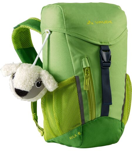 Ayla 6 fra VAUDE er en lille børnerygsæk med plads til 6 liter. Rygsækken har EasyFit polstrede skulderstropper, der kan krydses henover brystet for at forhindre at rygsækken glider. Hovedrummet er let tilgængeligt og har plads til alt, hvad der kan være behov for på kortere ture. På forsiden er der en lynlåslomme, og på siderne er der strækbare netlommer til vandflaske eller snacks. Alle spænder og lynlåse er nemme at åbne og lukke, selv for små børnehænder. Der er refleksdetaljer både foran og bagpå for øget sikkerhed i mørket. Rygsækken er delvist fremstillet af genanvendt materiale og har en miljøvenlig Eco Finish imprægnering på overfladen, der afviser vand.VAUDE Green Shape-mærket står for miljøvenlige og funktionelle produkter, der er fremstillet af bæredygtige og bluesign®-certificerede materialer.EasyFit polstrede skulderstropper, der kan krydses henover brystet1 lynlåslomme på ydersiden2 strækbare netlommer på siderneReflekterende detaljer både foran og bagpåBørnevenlige spænder og lynlåseNavneskilt på indersidenHovedmateriale: 100% polyester, heraf 50% genanvendt600D PU-belægningFor: 100% polyamid200D PU-belægning ...