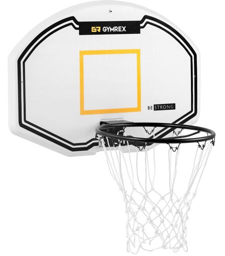 Denne basketkurv GR-MG41 fra Gymrex kan f.eks. anvendes på legepladsen eller i skolegården. Morgendagens NBA-stjerner må jo starte et sted, og det kan de passende gøre med denne basketkurv fra Gymrex. Gymrex er din ekspert indenfor sport, sundhed og udendørs legetøj. Basketball behøver ikke kun at blive spillet i en hal. Det kan også spilles udendørs. Denne basketball-kurv er konstrueret med stabile stålrør og en bagplade af plast der måler 91 x 61 cm. Nettet består af slidstærkt nylon der kan tåle sol, vind og regn. Nettet monteres på kurvringen på blot et øjeblik. Denne basketball-kurv kan både bruges som træning for en person, og til at spille flere mod flere. Kurvringens diameter på 42,5 cm er egnet til flere spilvariationer og kompatibel med den officielle turneringsbold på 24 cm i diameter. Bestem selv i hvilken højde basketkurven skal hænge. Med de tre forborede huller kan basketkurven monteres fast til en mur, så den også kan holde stand til dunking. Skruer og rawlplugs til montering er inkluderet i leveringsomfanget. Køb denne basketkurv og husk at bestille to med det samme. ...