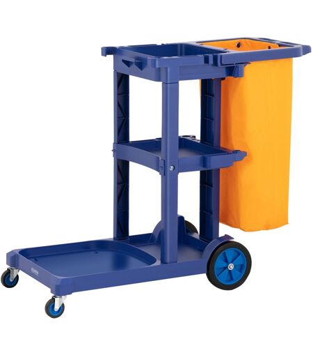 Hold gulve og bygninger effektivt rene med denne rengøringsvogn UNICLEAN 12 fra Ulsonix. Det alsidige rengøringsudstyr er en værdifuld følgesvend for pedeller, rengøringsfirmaer eller viceværter. Uanset om du arbejder på et hotel, i en restaurant, på et kontor eller andre steder, hvor der bliver lagt stor vægt på renlighed, så viser denne vogn sine kvaliteter, når gulve og sanitære faciliteter skal gøres grundigt rent. Rengøringsvognen overbeviser med sin store opbevaringplads, uden at give afkald på den nødvendige manøvredygtighed. De tre opbevaringshylder på vognen måler 37 x 32 cm og har god plads til rengøringsmidler og udstyr. Den mellemste opbevaringshylde kan justeres i højden. På den store plade foran kan du transportere spand, moppesi eller støvsuger. De store baghjul sørger for, at vognen er nem at komme rundt med selv på ujævne, forskelligartede overflader. Rengøringsvognens hjul kan derfor ikke skade gulvet. De mindre, 360 grader drejelige forhjul sørger for at vognen kommer frem - selv på begrænset plads og i smalle gange og korridorer. Det ergonomiske håndtag letter transporten af rengøringsvognen og fuldender dermed dens praktiske egenskaber. Rengøringsvognen er udstyret med en stor vasketøjspose, der alt efter behov også kan anvendes som affaldspose. Den er fastgjort sikkert på vognen men kan hurtigt tages af og tømmes. En stor fordel er at vasketøjs-/affaldsposen er lavet i et stærkt, vandtæt materiale, der er let at gøre rent, så du uden problemer kan transportere fugtige tekstiler eller affald. En række praktiske detaljer gør vognen velegnet til hverdagsbrug: En særlig holder sørger for, at du kan transportere moppen, mens den samtidig lufttørrer. En anden holder er beregnet til det uundværlige advarselskilt "glat gulv". Rengøringsvognen er lavet af stabilt, varmeresistent plast, der gør den let og robust på samme tid. Takket være de enkelte deles glatte overflade er vognen let at rengøre og opfylder dermed selv de strengeste krav til hygiejne. Rengøringsvognen bliver leveret adskilt men er nem og hurtig at samle. ...
