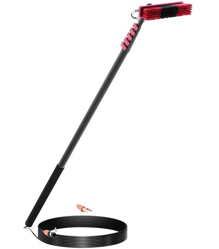 Med denne teleskopstang med børste fra ulsonix kan du på bare et øjeblik vaske solpaneler, vinduer eller andre glasoverflader. Med teleskopstangen kan du nå selv svært tilgængelige steder. Dermed er den perfekt egnet til professionelle rengøringsfirmaer. Teleskopbørsten har en vandtilslutning og 6 vandledninger. Tilmed kan børstehovedet hældes. Teleskop-vaskebørsten kan trækkes ud til 8900 mm. Når den er kortest, måler den 1820 mm. Den lange teleskopstang har et væld af anvendelsesmuligheder. Du kan nå høje steder helt uden brug af stige. Med en slange forbinder du teleskopstangen til en højtryksrenser. Med denne kan du fjerne hårdnakket skidt, uden at du behøver at skrubbe. Den bløde børste er perfekt til at vaske poly- såvel som monokrystallinske solpaneler. En regelmæssig pleje er med til at sikre solpanelets effektivitet. Teleskopstangen er fremstillet af robust aluminium. Børstehovedet drejer ikke om sin egen akse under arbejdet. Derfor kan man arbejde uden forstyrrelser. Vaskebørsten med teleskopstang har et ergonomisk greb der ligger godt i hånden. De anvendte materialer er letvægtige hvilket er en fordel ved længerevarende opgaver. ...