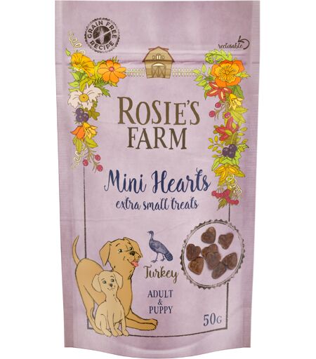 50g Rosie's Farm Puppy Snacks "Mini Hearts" Kalkun hvalpesnack