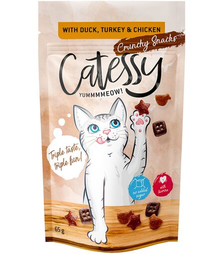 65g Catessy Sprøde Snacks - med And, Kalkun & Kylling kattesnack