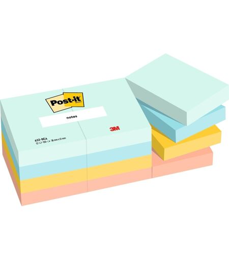 Post-it memoblok med selvklæbende notes – Beachside kollektionDe klassiske gule sticky notes fra Post-it er nogle af verdens mest solgte og brugte kontorartikler. Du får her en blok med kreative og farverige notes, som kan sætte lidt mere kulør på hverdagen. Beachside kollektionen giver en stemning af en tur på stranden, hvor de friske og glade farver samtidig sikrer at dine notes skiller sig mere ud og får beskeder til at springe i øjnene. Det gør derfor disse memoblokke oplagte til brug ved sortering og organisering af forskellig information, hvilket hjælper med at gøre dit arbejde mere overskueligt.De små Post-it notes er den perfekte ledsager i en travl hverdag, hvor tingene skal gå stærkt og hvor det kan være svært at huske det hele i hovedet. Med en Post-it memoblok ved hånden kan du hurtig og nemt kommunikere og videregive beskeder eller bruge dem som praktiske huskesedler, da de selvklæbende notes nemt kan sættes op lige præcis der, hvor du har mest brug for dem.De alsidige sticky notes er perfekte til at tage noter og organisere dit arbejde eller skrive beskeder og påmindelser i hverdagen. Samtidig er de selvklæbende notes en tydelig, enkel og effektiv måde at sikre, at arbejdet kører problemfrit, og at der samtidig holdes orden i tingene.De kreative og farverige Post-it Notes kommer her i blokke med 100 ark, som giver dig god mulighed for at farvekode dine memoer og derigennem skabe et godt overblik, som kan tilpasses lige netop dig og din måde at arbejde på. Disse Post-it notes er mindre end det klassiske og kvadratiske format i og med de kun måler 38 mm x 51 mm. Dette gør dem perfekte til notering af blandt andet telefonnumre og koder.Post-it Notes er fremstillet af PEFC-certificerede papirfibre, der stammer fra forsvarligt forvaltede skove og kontrollerede kilderFarve: Beachside mix med 4 farverMål (BxH): 38 x 51 mmAntal blade pr. blok: 100PEFC-certificeret papirLeveres i pakker med 12 blokke ...