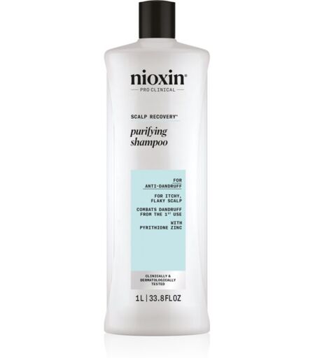 Nioxin Scalp Recovery Purifying Shampoo, 1000 ml, Shampooer til kvinder , Shampooen renser effektivt hovedbunden, vasker håret grundigt og giver det den naturlige skønhed tilbage. Egenskaber: fjerner skæl fra håret glatter hårstråene efterlader håret blødt giver glans og volumen styrker hårspidserne bekæmper skældannelse vasker håret og renser hovedbunden bekæmper kløe og tørhed i hårbunden Brugsvejledning: Påfør en passende mængde af shampoo i det våde hår. Skum, og skyl grundigt. ...