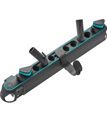 GARDENA Device Shelf Flex er ideel til pladsbesparende opbevaring af haveredskaber i ét stykke samt tilbehør og håndtag til kombisystemer. Redskabsstativet er udstyret med to værktøjsholdere: Små kroge til opbevaring af beskæresakse, sakse og andre små haveredskaber samt de fleksible, frit tilsluttelige værktøjsholdere, som kan drejes gennem 30° trin og placeres efter ønske. De er kompatible med GARDENA-kombisystemet og også med tilbehør fra GARDENA-systemet. Værktøjsbakken giver opbevaringsplads til to pinde af GARDENA-kombisystemet. ...