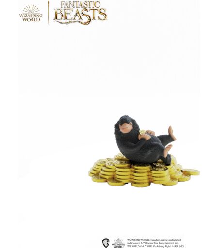 Niffleren med sin sorte pels og den typiske næblignende snude ser bare for sød ud. Dette sjove væsen fra filmseriens verden "Fantastic Beasts" har endnu en gang fundet noget glitrende. Begejstret ruller den på en bunke guldmønter og holder en mønt meget stramt. Han vil helt sikkert blive lidt længere og nyde øjeblikket lidt længere. ...
