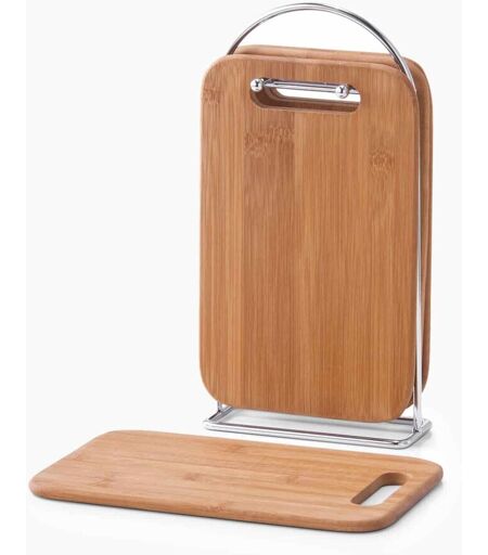 Zeller Skærebrætholder inkl. 4 skærebræt i bambus - Natur - 15cm x 6,5cm x 30cm - Erika
