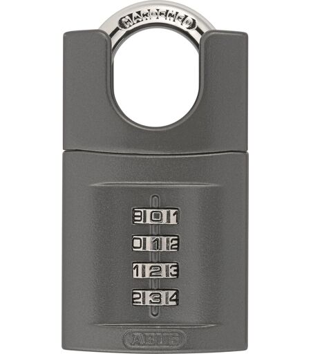 ABUS 158CS/50 Solid kombinationslåsDenne stærke hængelås er støbt med et zinkhus i sort finish. Selve bøjlen er fremstillet hærdet stål. Låsen er udstyret med bøjlebeskyttelse der gør låsen ekstra modstandsdygtig over for angreb. Begge sider af låsen aflåses. Hængelåsen er velegnet til et bredt udvalg af kommercielle anvendelser. Den kan f.eks. anvendes til aflåsning af porte, anhængere, værktøjskasser, containere, bagage mv.Farve: Sort finishMateriale: Zink og hærdet stålMål: L 96 x B 52 x 23 mmVægt: 358 gKodecifre: 4Sikkerhedsniveau: 6 ...