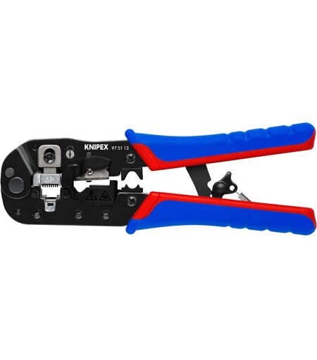 Knipex Krympetang 97 51 13 er et professionelt værktøj til skæring, beklædning og presning af 8-polede vestlige stik type RJ-45. Den parallelle krympning sikrer en nøjagtig krympeproces, og tvangslåsen (låsbar) sikrer en konsekvent høj krympekvalitet. En fræser til skæring i længden og stripping af CAT runde kabler er også integreret. Krympetangen 97 51 13 med ergonomiske flerkomponenthåndtagsdæksler er velegnet til nuværende og fremtidig vestlig forbindelsesteknologi i netværks- / Ethernet-området, til afskærmede og ikke-afskærmede vestlige modulære stik med 8P8C-opgave. ...