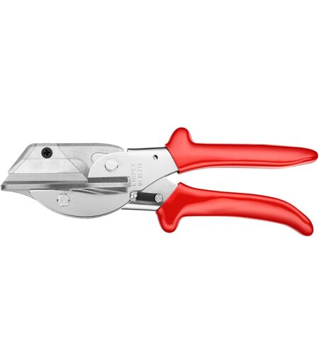 Knip-forskydningen 94 35 215 bruges til knusfri skæring af plast-, gummi- og bløde træprofiler (også til båndkabler op til 56 mm brede). Den udskiftelige skærepude er udstyret med stopvinkler til 45° snit og markeringer til 60°, 75° og 90° snit. Geringesaksen 94 35 215 har en åbningsfjeder og en låselås. Værktøjshuset er lavet af specielt værktøjsstål, valset og oliehærdet. Bladet er et standard udskifteligt trapezformet blad. ...
