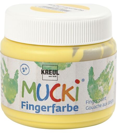 God og tyk fingermaling til de mindsteMucki fingermaling er vandbaseret, tykflyende maling i høj kvalitet, som er specielt udviklet til små børn helt ned til 2 år. Malingen er drøj i brug og tørrer mat op og kan samtidig let vaskes af både hænderne og tøjet. Dertil kan farverne nemt blandes, så der kan skabes nye og spændende farver og nuancer.Farve: GulIndhold: 150 ml ...