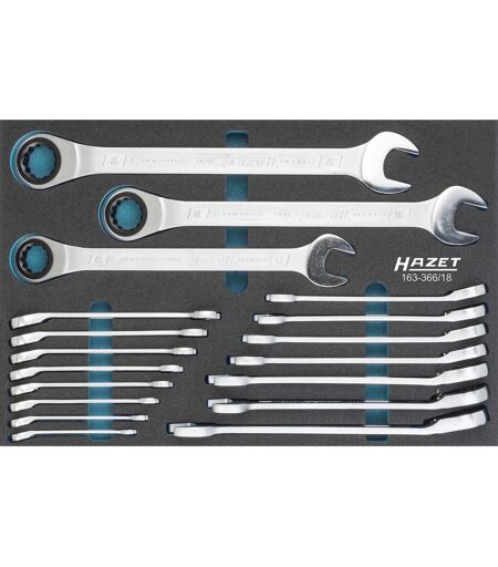 HAZET fremstiller førsteklasses højpræcisionsværktøjer til de højeste krav. Ratchet Ring Wrench Set 163-366/18 består af et 18-delt sortiment af skralderingnøgler. Serien leveres i en skumindsats med HAZET klassifikationssystem størrelse 3/3, velegnet til værkstedsvognassistenten. ...