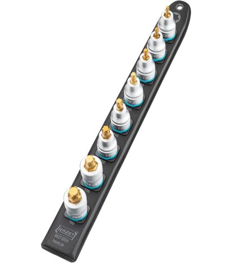 SmartRail 992T-SR/8 fra HAZET består af et fleksibelt plasthoved med 1/2" firkantede monteringer, udstyret med otte praktiske 1/2" skruenøgleindsatser til handel, industri og værksteder. Den magnetiske underside af SmartRail-serien sikrer et perfekt greb på alle magnetiske overflader, f.eks. på værkstedsvogne, på værktøjsvægge, maskiner eller løfteplatforme og i skuffer. Den holdbare, robuste drejelås sikrer en fast montering af plug-in-møtrikkerne og giver stadig øjeblikkelig adgang: Drej blot stiknøgleindsatsen til venstre for at fjerne den. Det praktiske piktogram og størrelsesbetegnelsen for alle medfølgende stiknøgleindsatser gør det lettere at finde den ønskede størrelse. De otte 992T-stiknøgleindsatser med knurled håndtag er lavet af krom vanadium, forkromet og poleret. Knivene er TiN (titanium-nitrid) belagt. Den specielle CVD-proces til meget hård TiN-belægning opnår ekstremt høj vedhæftning og slidstyrke af laget, hvilket muliggør stærkere slidbeskyttelse og forbedrer levetiden betydeligt. Den optimale lagtykkelse fører til en perfekt pasform, muliggør højere drejningsmoment og giver optimeret korrosionsbeskyttelse. Stiknøgleindsatsen 992T er velegnet til manuel betjening. ...