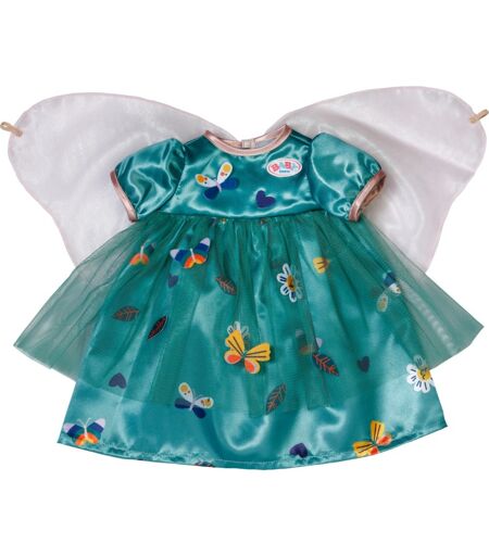 Denne søde kjole kombinerer ædelt grøn med lyserøde kanter og flotte sommerfugle- og bladapplikationer. Med vingerne bliver Baby born endelig en fe - simpelthen magisk! Dette dukketøj er velegnet til de BABY fødte dukker med en størrelse på 43 centimeter. ...