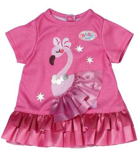 Denne lyserøde dukkekjole med et fint flamingoprint giver dyresjov på børneværelset. Selv flamingoen har en smuk lille kjole på! Så BABY born er altid elegant klædt på. Dette dukketøj er velegnet til de BABY fødte dukker med en størrelse på 43 centimeter. ...