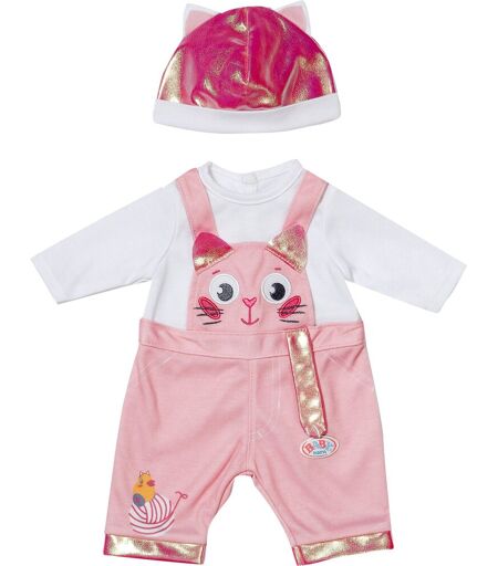 Sød kat advarsel! Med denne killingedragt ser BABY born simpelthen katteagtig ud! Heldragten består af en hvid skjorte med lange ærmer og lyserøde smækbukser med et sødt kattehoved. Den indeholder også en glitrende hat med flotte katteører. Dette dukketøj er velegnet til de BABY fødte dukker med en størrelse på 43 centimeter. ...
