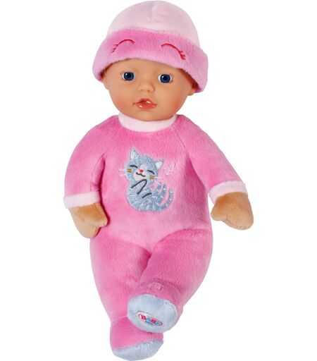 Baby born Sleepies til babyer 30cm er en nuttet introduktion til Baby borns verden: De søde dukker har en særlig blød dukkekrop lavet af stof og er derfor nemme at gribe fat i selv med små babyhænder. Indeni er der en rangle. Denne version bærer en permanent påsat grå og hvid hat og en lyserød bodystocking med et sødt killingeprint - perfekt til at øve sig i at gribe og elske selv for nyfødte! ...