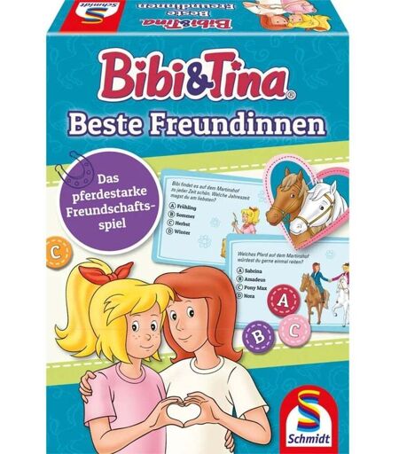 Børnespillet "Bibi & Tina: Best Friends" fra Schmidt Spiele er velegnet til børn fra 7 år og opefter. Det kan spilles med 2-6 personer og varer ca. 25 minutter. I dette spil kan bedste venner som Bibi og Tina finde ud af, hvor godt de kender deres vens hemmeligheder, drømme og ønsker. Ved hjælp af spørgsmålskort udforskes forskellige emner. Der er fire mulige svar i hvert enkelt tilfælde. Dette spil tilbyder en sjov måde at finde ud af mere om dig selv og dine venner. Ideel til at have det sjovt sammen med din bedste ven! ...