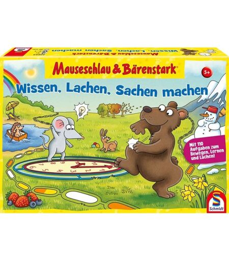 Med spillene fra serien "Mouse Smart & Strong" opdager børn verden på en legende måde. Med "Knowledge, Laughter, Making Things" kommer en klassiker fra Schmidt Spiele i en ny forklædning. Dette børnespil for børn fra 5 år og opefter kan spilles af 2-4 spillere og tager ca. 30 minutter at gennemføre. Spillet indeholder 110 opgaver med bevægelse, læring og latter. Det indeholder også spørgsmål om årstider og tidspunkter for at teste børnenes viden. Med musen Bo, der altid vil vide nye ting, og bjørnen Bo, der opfordrer til bevægelse, tilbyder legen en oplevelse for børn, der er lige så underholdende, som den er lærerig. ...