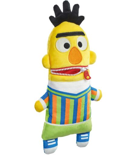Med sit solide øjenbryn og sin grøn-orange-blå langsgående stribede sweater er Bert en integreret del af Sesame Street. Bert kan lide at samle flaskehætter og papirclips og har et blødt punkt for duer. Når Ernie bringer ham tilbage til håndfladen, lytter han til messingmusik eller en polka for at berolige ham. Blød og officielt licenseret bekymringsæder figur, ca. 35 cm høj. ...