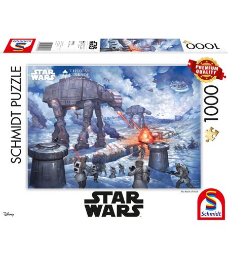 Puslespillene i premium-serien fra Schmidt Spiele overbeviser med et stort udvalg af former, maksimal nøjagtighed af pasform og en speciel mat lak til spejlfrie puslespil. Dette puslespil viser et motiv fra Thomas Kinkade Studios: Slaget ved Hoth. Det færdige puslespil med 1000 brikker måler 69,3 x 49,3 centimeter. ...