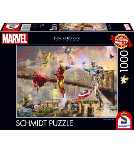 Detta Marvel-pussel från Schmidt med 1000 bitar visar en episk strid mellan Avengers och deras fiender. Designad av Thomas Kinkade Studios, innehåller detta pussel detaljerade och livfulla bilder av ikoner som Iron Man, Captain America, Hulk och fler av dina favoritkaraktärer från Marvel-universumet. Det är ett premiumkvalitetspussel, perfekt för både Marvel-fans och pusselentusiaster. Rekommenderad ålder: 12+ Antal bitar: 1000 ...