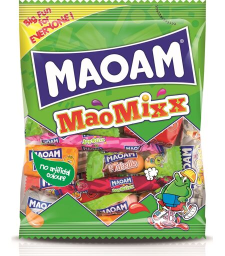 Haribo Maoam Mao MixxMed Haribo Mao Mixx får du en pose med en god blanding af alle Maoam klassikerne. Posen indeholder b.la. Pinballs, JoyStixx, ChewTwo, Stiber og Maoam 1-pak Bloxx, som er de velkendte firkantede brikker af blød frugtkaramel og fælles for alle de elskede favoritter fra Maoam er deres forfriskende og lækre frugtsmag.Indeholder: Maoam klassikereVægt: 240 gForfriskende frugtsmag ...