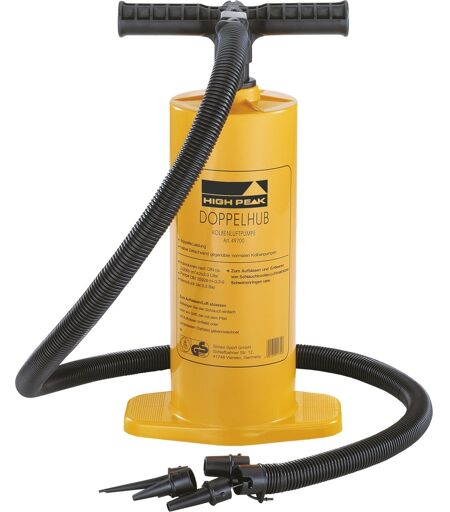 High Peak dobbeltløftepumpen har en kontinuerlig luftstrøm under træk- og trykbevægelser. Ideel til oppustning og udluftning af store oppustelige genstande. Pumpen har bajonetlukninger, 4 adaptere og en lang, ikke-spændende slange. Pumpen med et volumen på 2 x 2.000cc vejer kun ca. 900 g. ...