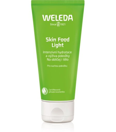 Weleda Skin Food Light, 75 ml, Fugtighedscremer til kvinder , Føler du, at din hud har brug for en lidt mere intensiv pleje end den, som den kan få fra en bodylotion? Det giver kropscremen Weleda Skin Food Light, der er karakteriseret ved en fed konsistens og en evne til at hydrere og nære i lang tid. Den tilfører huden over hele kroppen nødvendig blødhed og næring, vil forkæle den med sin cremede konsistens og beskytte den mod uønsket udtørring. Egenskaber: gennemfugter huden i dybden nærer intenst og smidiggør er god at påføre, trænger let ind og klistrer ikke Brugsvejledning: Anvend på den rene hud og masser blidt, indtil det er trængt helt ind. Brug efter behov. ...