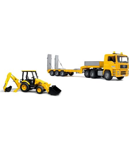 Low-loadere bruges ofte til at løse tunge transportopgaver, såsom transport af store entreprenørmaskiner fra byggeplads til byggeplads. Hos BRUDER er lavlæsseren MAN TGA lastet med en rendegraver, model MIDI, fra den engelske producent JCB. Dette imponerende køretøj har de velkendte egenskaber fra MAN lowloader, såsom sættevognens fuldt funktionsdygtige drejeskivekobling, foldbare støtteben og påkørselsramper. JCB MIDI rendegraveren kan bruges til arbejde foran og bag, og førersædet kan drejes 360 grader. Den har også foldbare stolper og slidbanedæk. ...