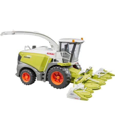 Jaguar 980 er den største foderhøster i sortimentet af høstmaskinespecialisten Claas. Med den imponerende ydeevne fra en V12-dieselmotor med 884 hk og nyudviklede driv- og høstsystemer er denne maskine i brug overalt, hvor store markarealer skal høstes hurtigt og effektivt. En meget detaljeret model i skala 1:16 er nu tilføjet til BRUDER''s landbrugssortiment. Foderhøsterens imponerende majs tandprotese er udstyret med 6 drevne foderskiver, og udstødningsmanifolden kan drejes legende i enhver ønsket retning. Døren og motorhjelmen til åbning giver et indblik i det detaljerede førerhus og den imponerende motor og understreger endnu en gang Bruders credo, "ligesom den ægte vare". Et andet højdepunkt er de udskiftelige hjul, som øger legeværdien igen. ...