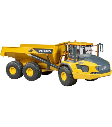 Dumpere er ægte arbejdsheste! Dumperen kan spille på sine styrker i effektiv transport af bulkvarer i jordarbejder, asfalt i vejbyggeri, overbelastning i stenbrud og grusværker. En af de mest kraftfulde dumpere, Volvo A60H, er ny i BRUDER''s temaverden for entreprenørmaskiner. Som med den store prototype er off-road-kapaciteten eksemplarisk på grund af den massive leddelte styring i forbindelse med de enorme ballondæk. Gennem taglugen kan en bworld-figur tage plads i det topmoderne førerhus, og små dumperpiloter kan læsse og tømme det trofaste, enorme vippehus. ...